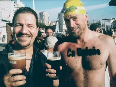 After the 2007 Travesía del Musel with Frank Delgado, owner of Ca Beleño pub and my proud sponsor.