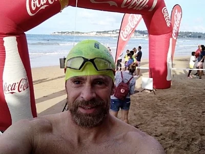 I started sea swimming while working as a lifeguard on Caravia beach in Asturias in the summer of 1997. That year I did my first Travesía del Musel in Gijón. This is a tough 3.8km swim in the bay of Gijón, starting at the Musel dock then out across the open harbour where the water is cold and can be very rough, until reaching the shelter of the marina and the finish line at the old fish market. Competitors wear short swimsuits. Neoprene suits are permitted but are frowned upon, and swimmers wearing them are ineligible for prizes. I used to do the race every year while I lived in Asturias, and have gone back to do it numerous times since moving to Barcelona in 2001.